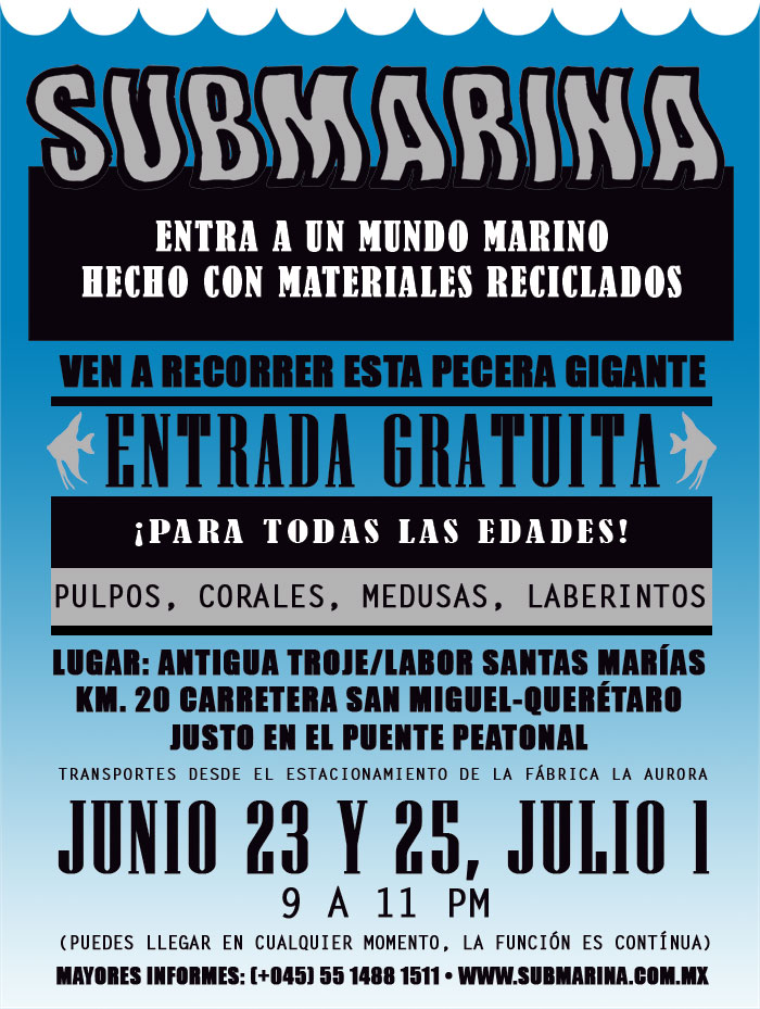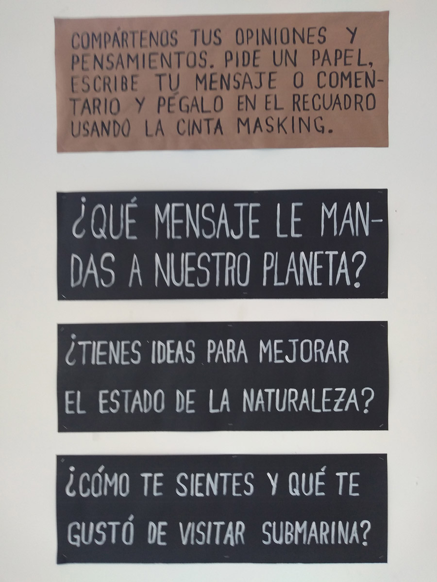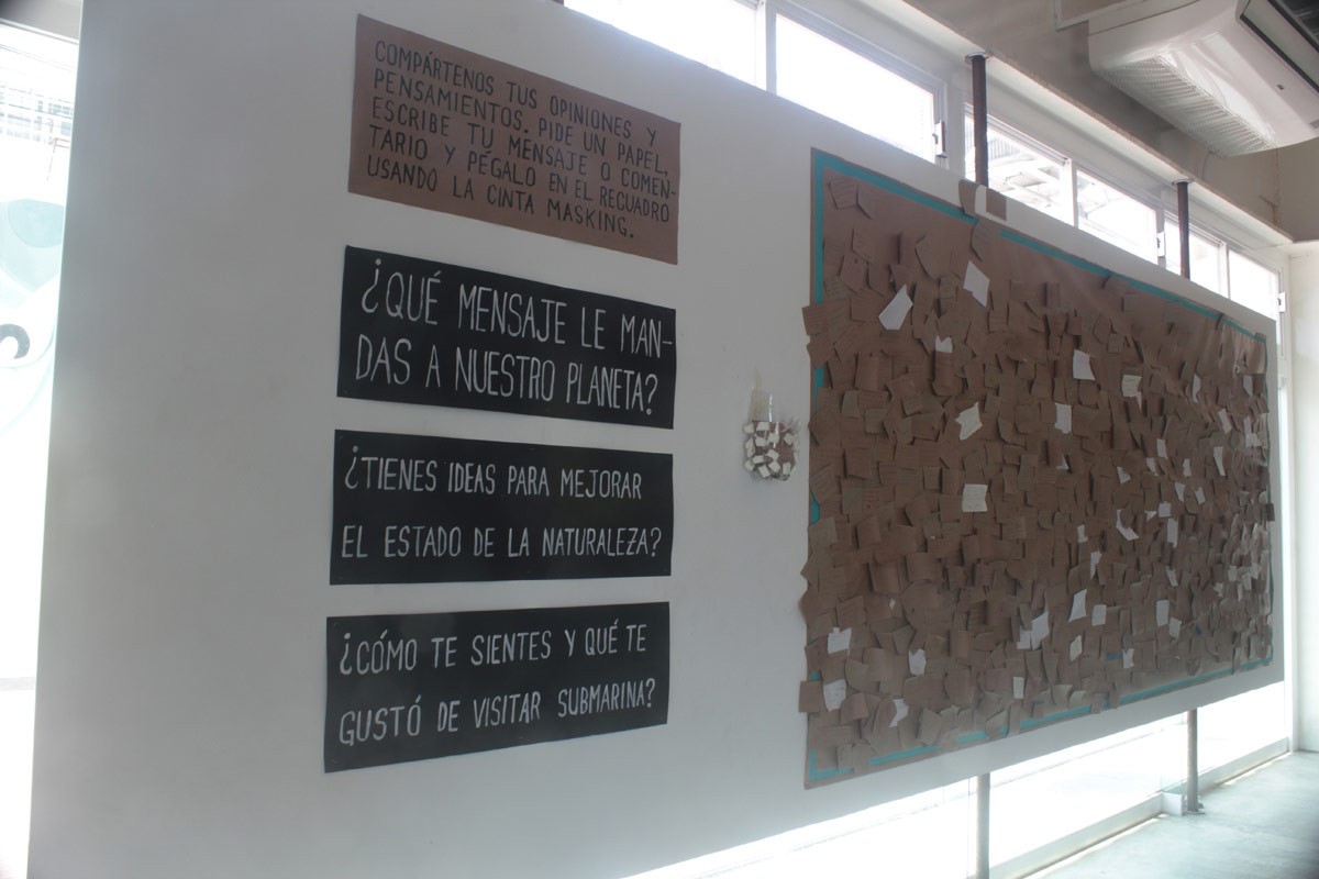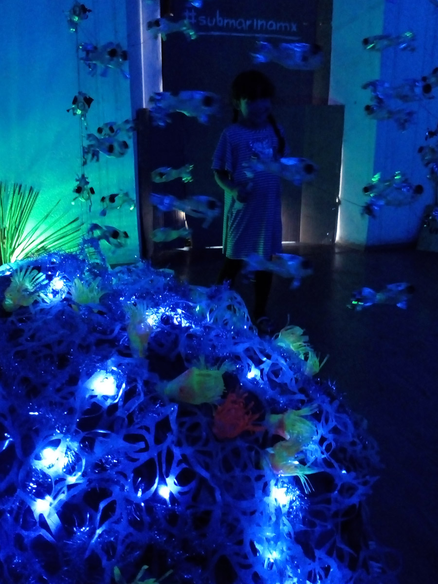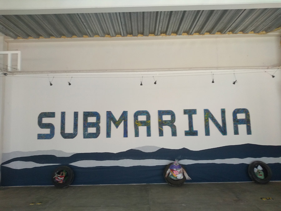 Primer montaje en la Ciudad de México! (área 150m2). Se realizaron visitas guiadas y se contó con la participacion de grupos de escuelas vecinas de la fundación y grupos de escuelas especiales de niños con discapacidad. Todo el mundo se lo pasó muy bien, Submarina es un lugar de encuentro y fantasía también.