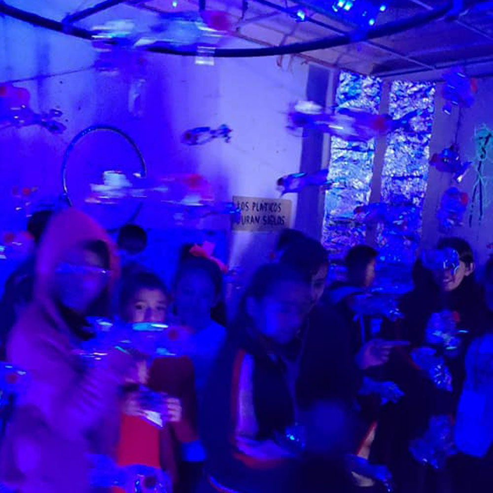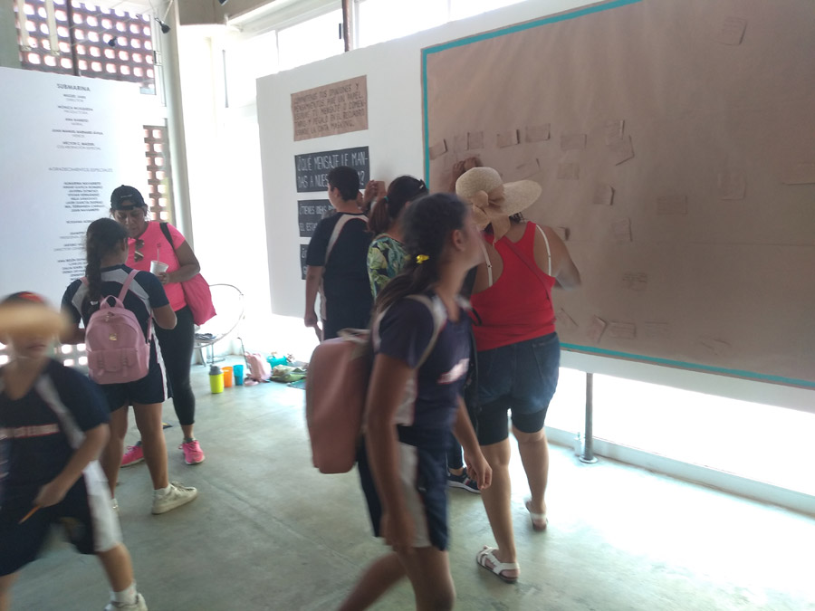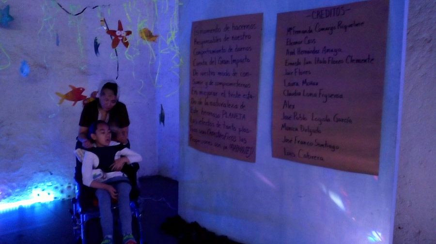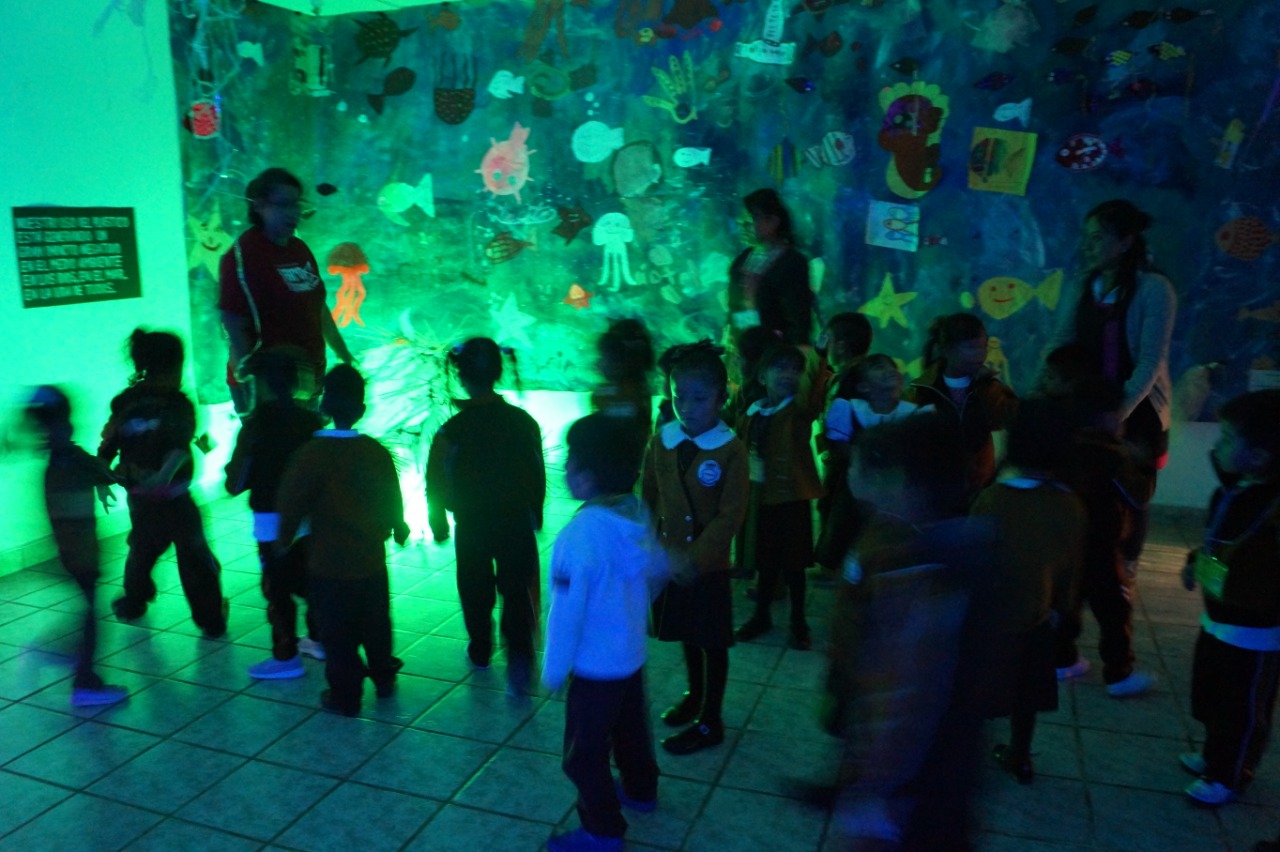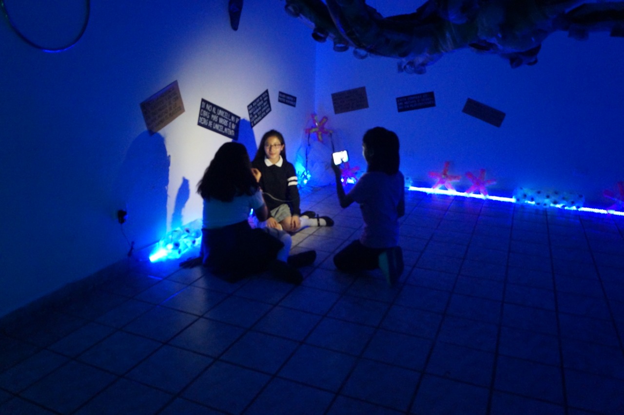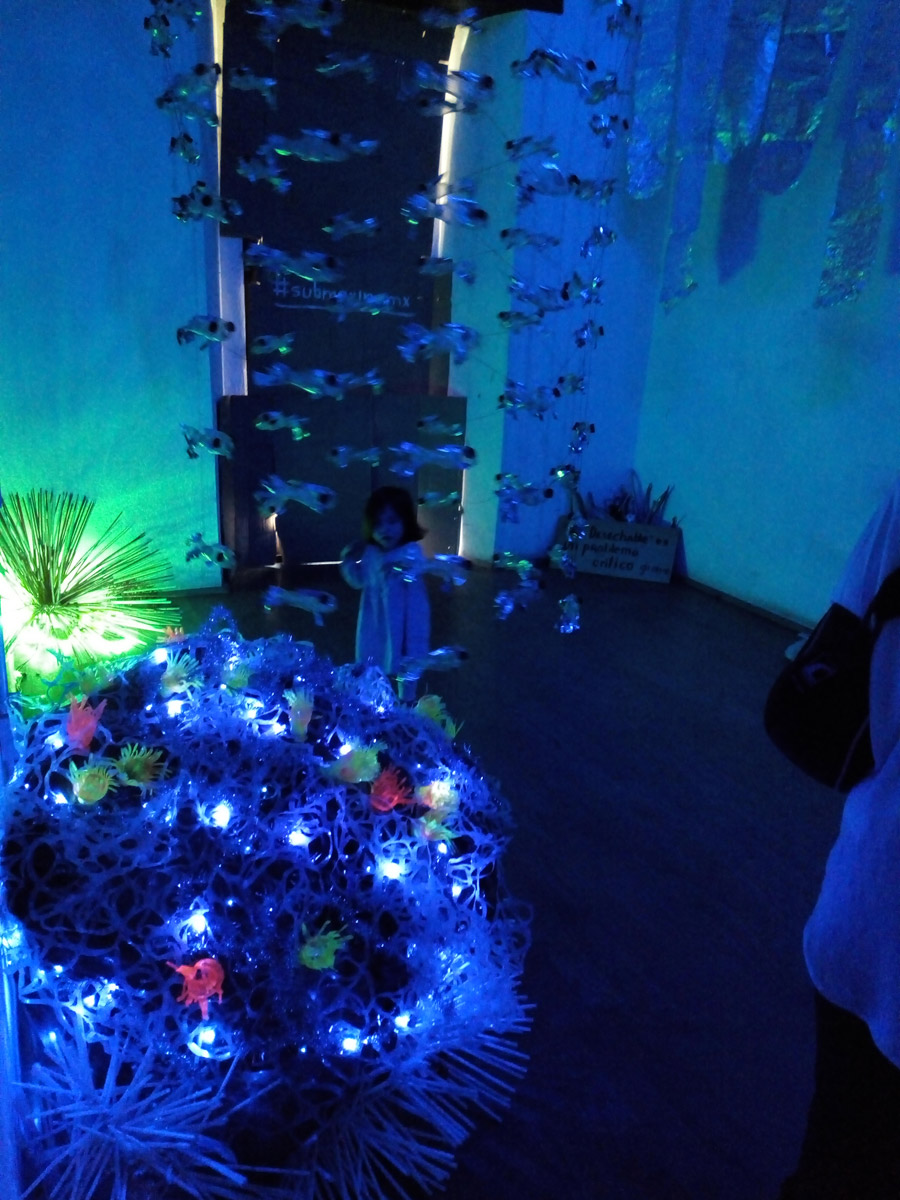 Primer montaje en la Ciudad de México! (área 150m2). Se realizaron visitas guiadas y se contó con la participacion de grupos de escuelas vecinas de la fundación y grupos de escuelas especiales de niños con discapacidad. Todo el mundo se lo pasó muy bien, Submarina es un lugar de encuentro y fantasía también.
