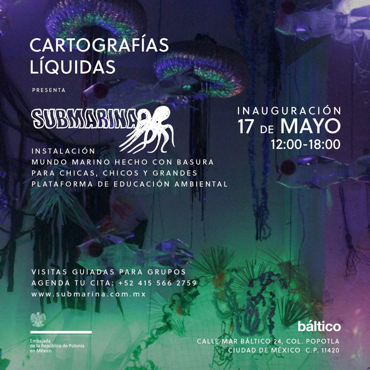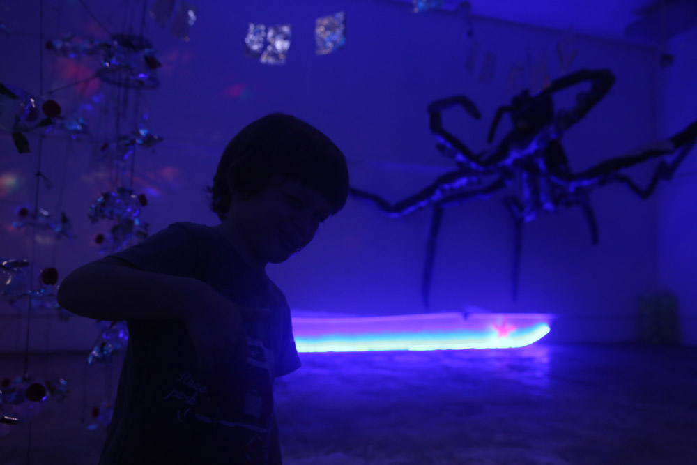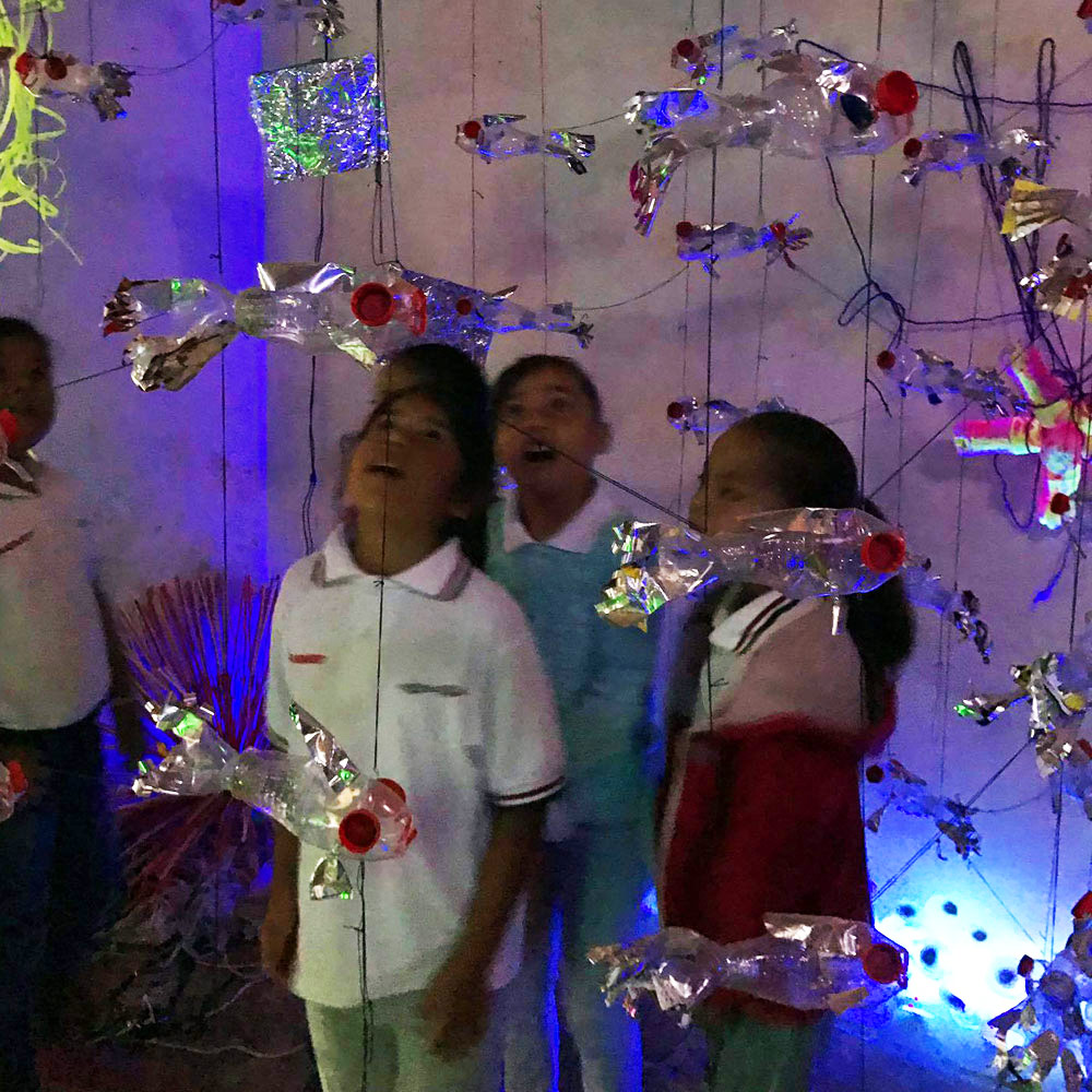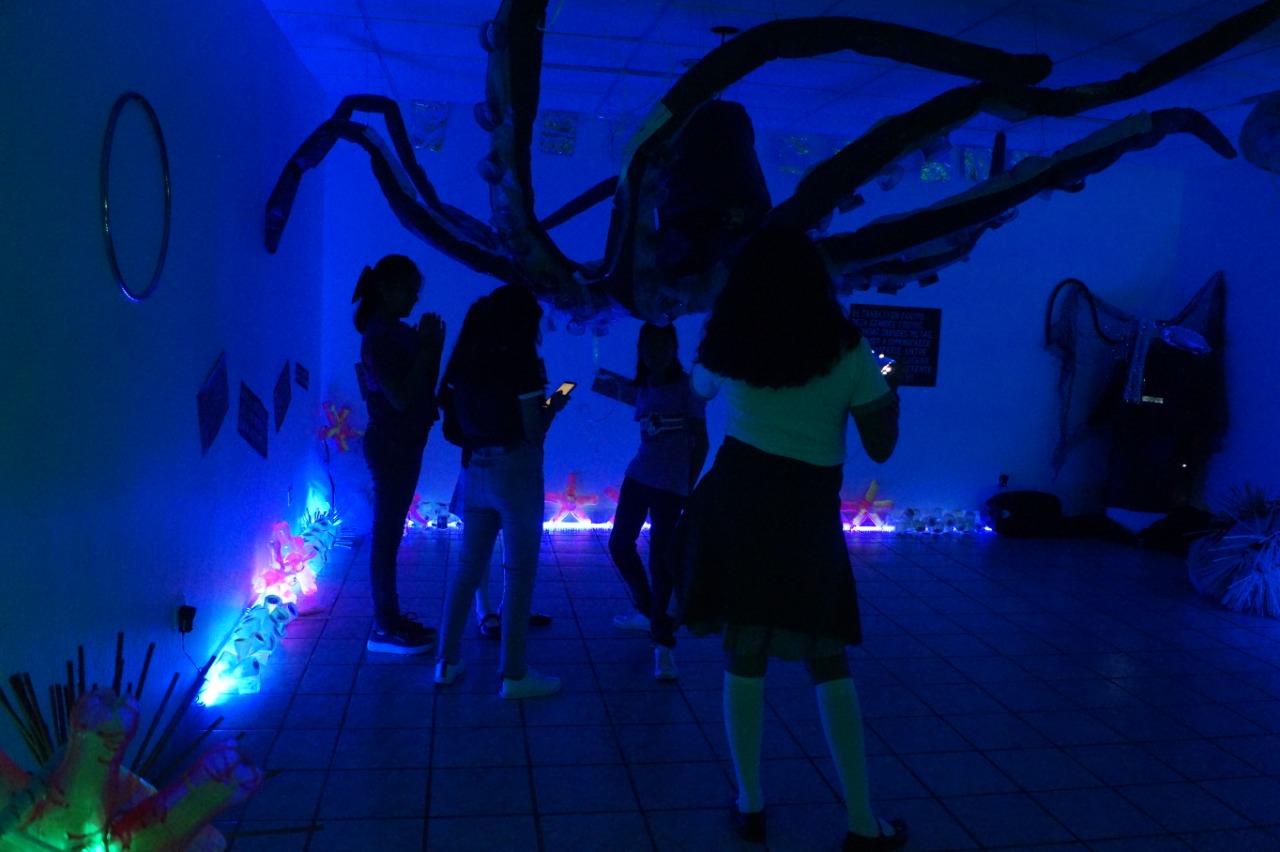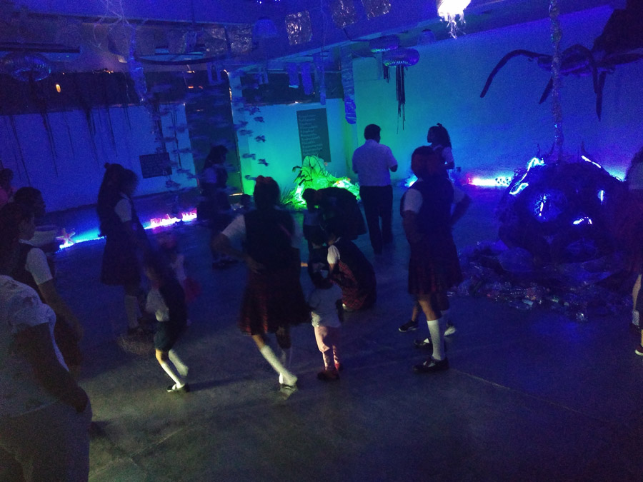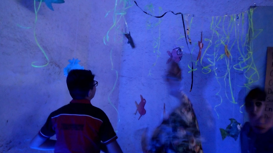 Primer montaje en la Ciudad de México! (área 150m2). Se realizaron visitas guiadas y se contó con la participacion de grupos de escuelas vecinas de la fundación y grupos de escuelas especiales de niños con discapacidad. Todo el mundo se lo pasó muy bien, Submarina es un lugar de encuentro y fantasía también.