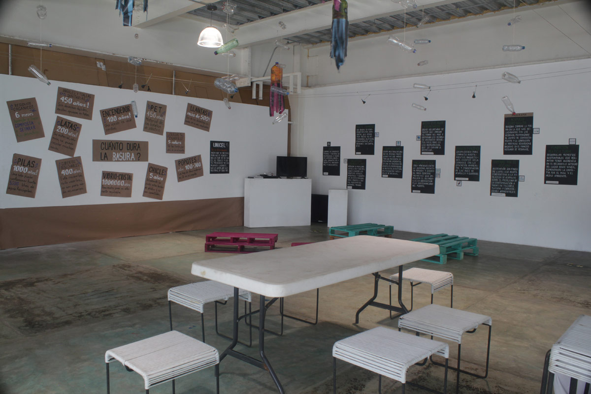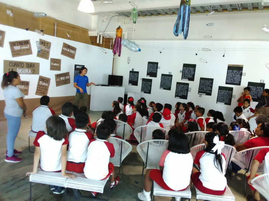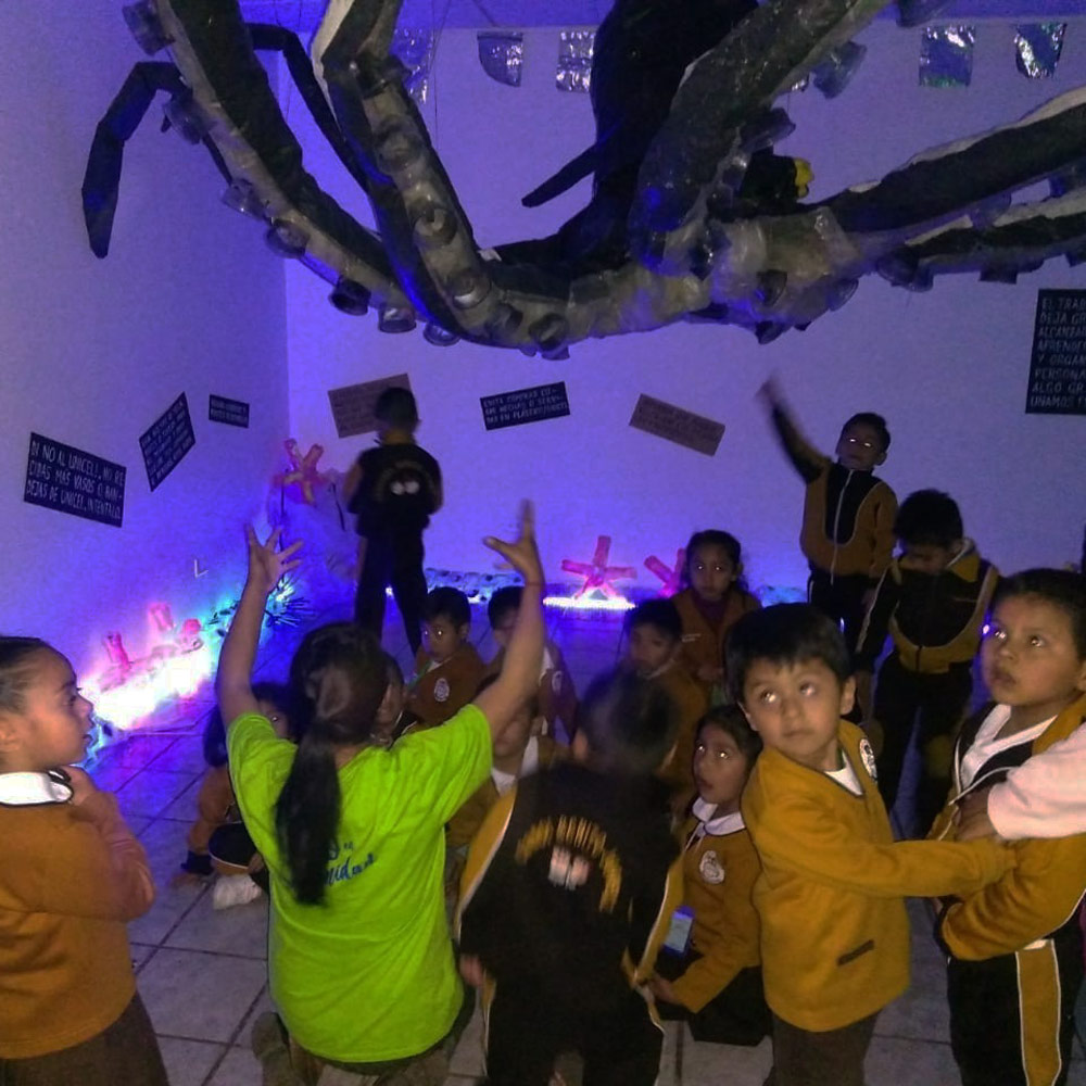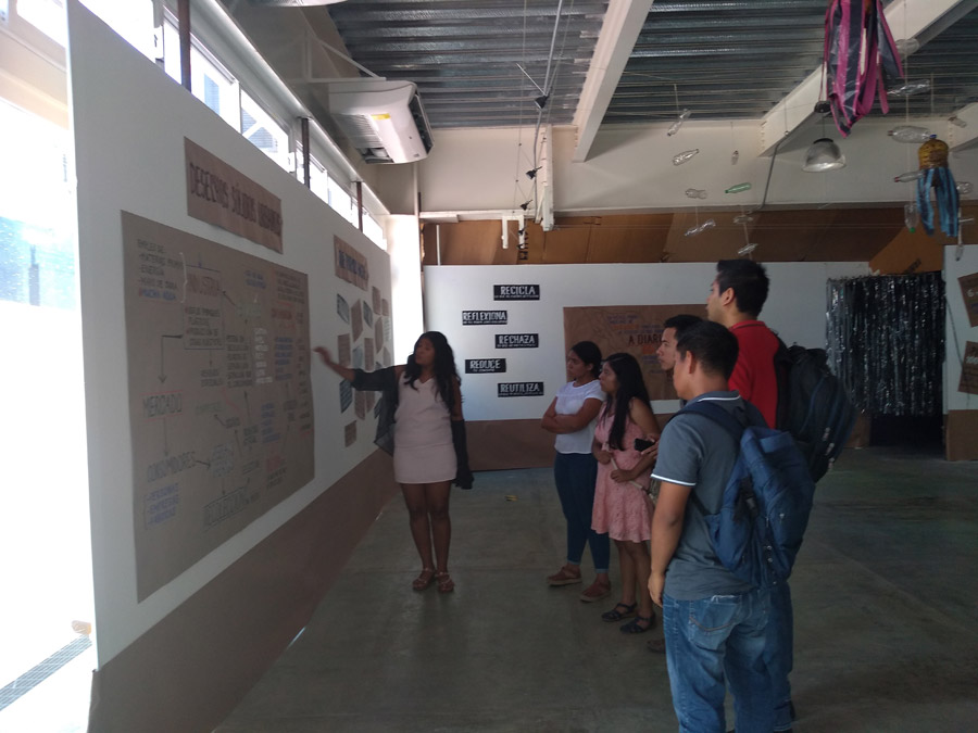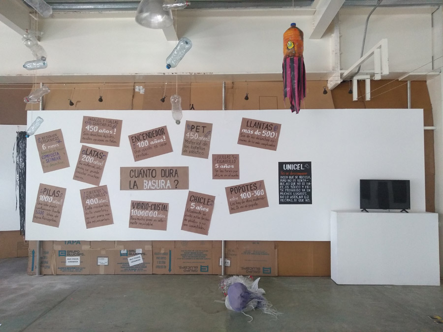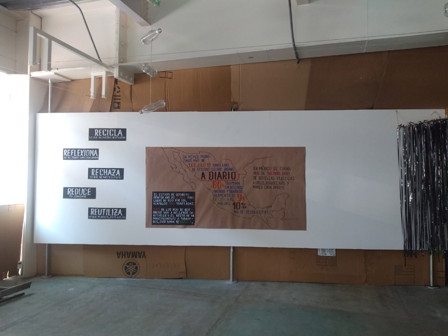 Montaje voluntario para este municipio de Xochimilco. Se gestionó con escuelas publicas de la localidad que llevaron a muchos grupos a recibir vivistas guiadas y generar reflexion sobre el maneko de residuos y la responsabilidad de consumo.