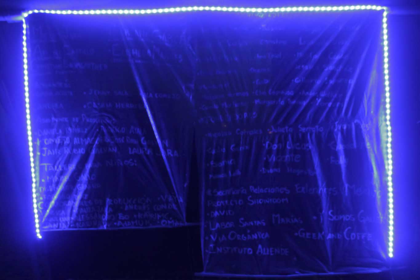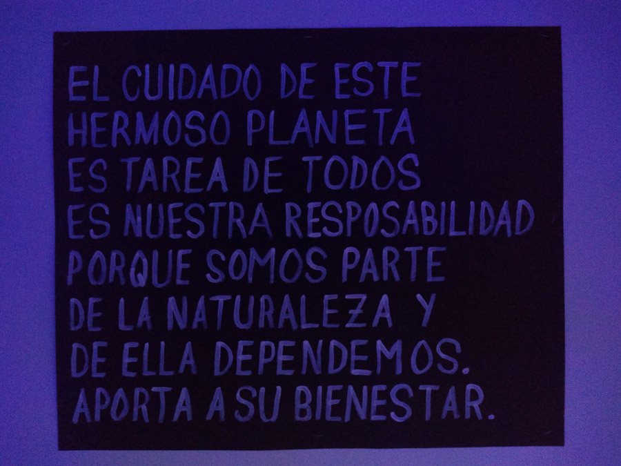 Montaje grande, se generó una sala informativa paralela a la instalación artística, es donde se exponían infografias, se realizaron 32 activaciones de diferentes tipos en colaboración con 9 generosas y comprometidas organizaciones civiles. En este montaje fueron alrededor de unas 3000 personas, en su mayoria con visitas guiadas. Agradecimientos especiales a Almarina Navarrete y a Javiera Donoso.