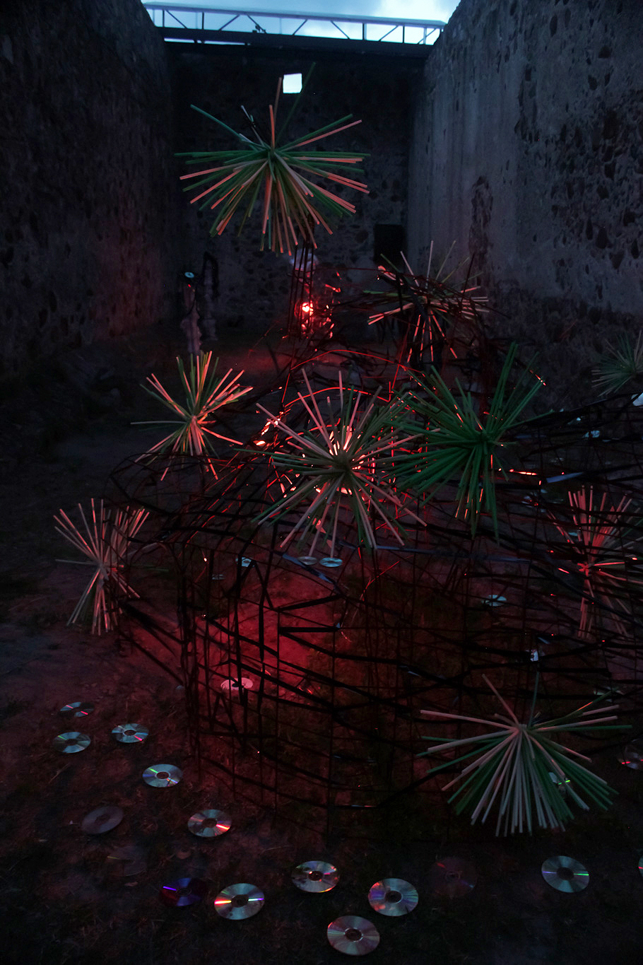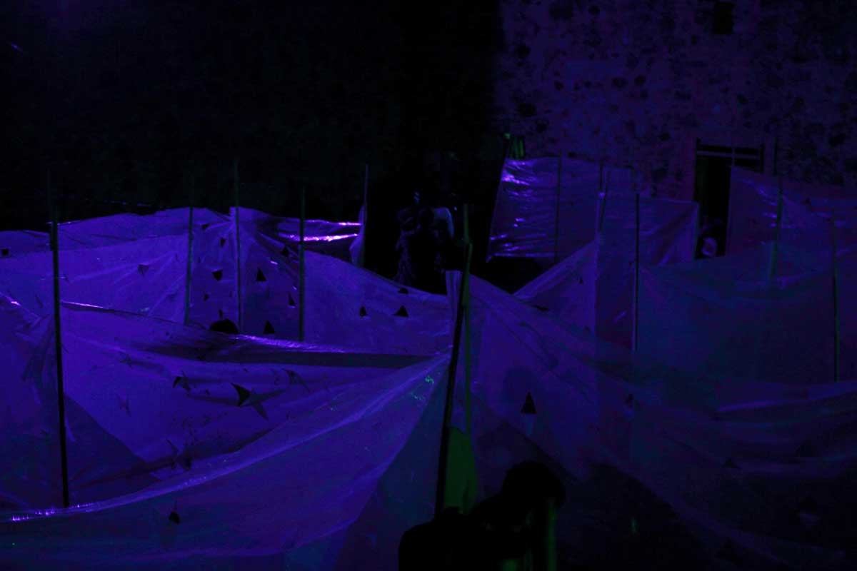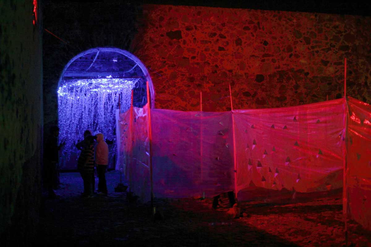 La construcción es una hermosa troje del s. XVIII (area 500m2). Nacimiento de Submarina! Realizado con el Apoyo de la AMEXCID (SRE). Muchas personas y organizaciones sumaron en este arduo embarazo. Fue un montaje exigente, pero asi nació Submarina, de noche y en el Bajío.
